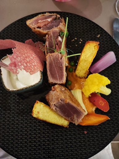 Read moreAlors, tout d'abord je tiens à vous dire que ce repas en amoureux nous était offert dans cet établissement que nous ne connaissions pas. Ce repas à été un enchantement pour le regard et les papilles. Le restaurant intérieur et son coin jardin où nous avons pris place d'une propreté exemplaire et confortable, second point qui n'est pas négligeable, le sourire de notre serveuse et son service précis, avec un temps réglé comme du papier à musique entre deux plats, disponible et tout à fait capable de nous décrire le contenu de nos assiettes, (ce qui n'est pas le cas partout). Quand au chef, Florent, c'est une certitude il ira loin, nous sommes prêt à refaire nos 100km, pour déguster, mieux, pour imaginer et mettre en éveil nos sens.... Que du BONHEUR et, par les temps qui court, c'est rare ! Bravo, pour le goût, les parfums et les couleurs. Allez-y les prix sont très correct pour la qualité des plats et le service. Encore merci à tous et au chef si souriant et charmant que nous avons rencontré. De retour chez vous dès que possible, (dans pas longtemps).Mr...