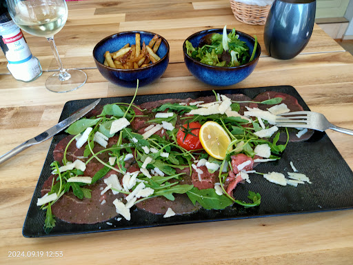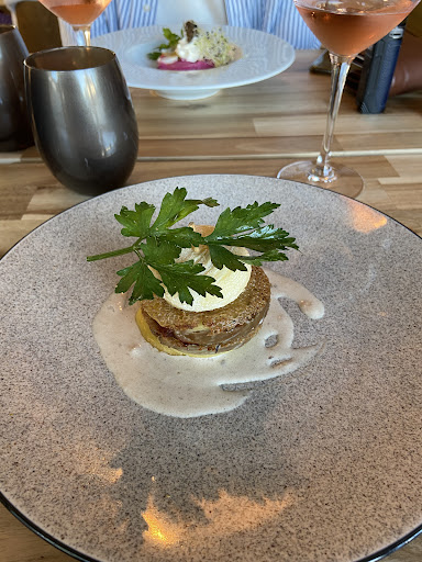 Read moreC'est un petit restaurant très agréable, on y est bien, un bon service, un accueil sympathique. Le repas est très appréciable, les quantités suffisante, la présentation de l'assiette est jolie. Toutefois je n'ai pas apprécié la poire confite dans mon entrée et mon plat principal (sèche avec les pépins je n'y est pas trouvé un intérêt gustatif appréciable). La fricassée de gambas vraiment trop peu ( l'équivalent d'une gambas, une deuxième aurait fait son affaire). En ce qui concerne la branche de persil sur mon dos de cabillaud et le filet de poulet c'est pas jolie jolie. Mon poisson était cru au centre dommage c'était presque parfait (on m'a gentiment suggéré de le dire avant pour en faire un autre mais j'en avais mangé les 3/4, ça ne se fait pas). Bon allez, rien de catastrophique, il...