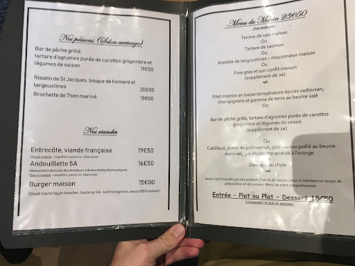 Read moreL'acceuil par les serveuses est plutôt sympathique, une fois installé à table c'est une autre histoire. On vous indique la table réservée et puis vous attendez environ 15 minutes avant qu'on s'occupe de vous. Nous avons choisi ma femme et moi le menu à 28€ pensant trouver une valeur sure et bien maitrisée par leur cuisinier. En fait il n'en est rien les portions sont mesurées, nous avions choisi un pavé de turbo. L'assiette est arrivée froide mais surtout je n'ai jamais mangé quelque chose d'aussi insipide, l'accompagnement du simple riz blanc , un trait de polenta bien fade une compotée de tomate basique, franchement ils se moquent du monde. Sans compter le service, l'assiette balancée sur la table sans un mot de la serveuse, incroyable impolitesse, surtout après tant d'attente. Je ne vous parle pas des desserts, une misère, boule de glace, fromage blanc, far breton (je leur apprendrai bien la recette). C'est lamentable cet établissement ne tient que par son emplacement sur les quais face à la mer et je ne vous parle pas de l'inorganisation de cette équipe qui court partout dans tous les sens sur un fond sonore d'Edith Piaf un peu agaçant après une heure d'attente, le tout sans résultat efficace.La personne qui semble être la patronne ne trouve rien de mieux à me dire face à mon mécontentement " Ha vous savez il y a beaucoup de monde ce soir" comme si de vrais professionnels ne pouvaient faire face à ce genre de situation, incroyable ! Bref oubliez cette gargouille, gardez votre argent pour une...