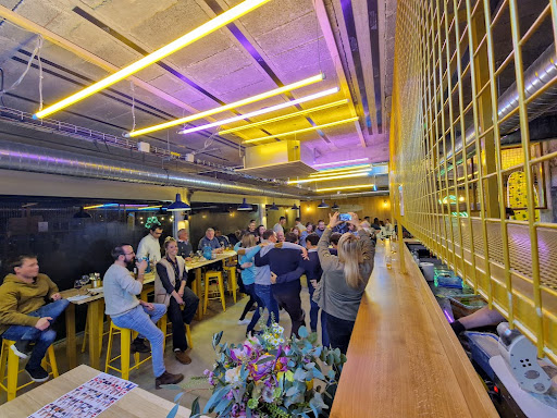 Read moreNous sommes venu mangé à 3 un dimanche soir. Cette microbrasserie est très bien placée dans Quiberon, c'est le premier restaurant qu'on croise en arrivant. L'intérieur est typé industriel, avec des néons colorés, du béton ciré au sol Malheureusement l'ambiance n'était pas vraiment à notre goût. Le restaurant, de fait de sa construction industriel, est très bruyant. Il n'y a pas de serveur, on commande au bar, on va chercher les pizzas au bar une fois que bipeur vibre, on prends les boissons ainsi que les couverts nous même, on se sert de l'eau nous même et les pizzas arrivent sur des planches recouvertes de papier sulfurisé. Les pizzas (qui sont d'ailleurs les seuls plats de la brasserie) étaient plutôt bonnes, et peu chères par rapport à ce qu'on peut trouver sur quiberon