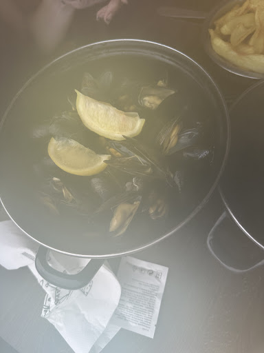 Read moreServeurs qui ne donne pas de serviettes d'entrée de jeu, il faut les réclamer, ensuite il faut également réclamer les frites, car nous avons commandé des moules frites sans frites.. Nous n'avons pas non plus eu de pain, devons nous lapper notre sauce marinière ? C'est la première fois que je vois une serviette humidifiée jaune et desséchée. Le seul point positif était ce charmant goéland qui réclamait des moules à l'extérieur de la terrasse. Les moules semblaient mélangées et pas très fraiches, les frites ne semblaient vraiment pas maison, et pour finir les sauces sont des suppléments sous prétexte de fait maison, mais pour un total de 40 euros, une sauce incluse ne ferait pas de mal.. Pour finir les serveurs sont adorables, tous les retours négatifs que j'ai cité à leur encontre ne sont pas dû à une méchanceté quelconque ou mauvaise foi de leur part, mais très certainement à des mauvaises conditions que leur inflige leur patron, sale caractère, zéro diplomatie, zéro tact, pas de savoir vivre. Courage aux serveurs, de plus nous avons tous été malade dans la...