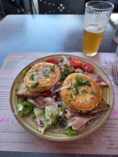 Ate dinner here during summer festival. Chèvre Chaud salad and it was delicious. Wife got the salad Paysanne and it was also good. Daughter's vampagnard croquet looked great and was a good size portion. Finished up with the marquis au chocolate which was fantastic. Like flour less...