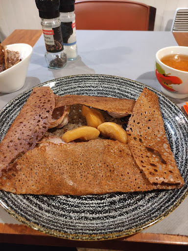Petite crêperie vraiment très sympathique juste à côté de l'église ! Le serveur est très sympa, la carte est bien remplie pour tous les goûts et les galettes et les crêpes sont vraiment excellentes :) Y étant allé un soir de weekend de Saint-Valentin en solitaire, il y avait quand même un peu de monde (tant mieux pour le restaurant du coup!) et je n'ai pas eu la possibilité de discuter plus amplement avec le serveur qui n'a pas arrêté de courir partout mais cela n'a pas empêché d'apprécier ma soirée tout de même, et je reviendrai avec plaisir :) PS : La galette pommes - andouille de Guémené et la crêpe flambée au Calvados avec caramel et pommes m'ont largement conquis, je ne peux que vous les...