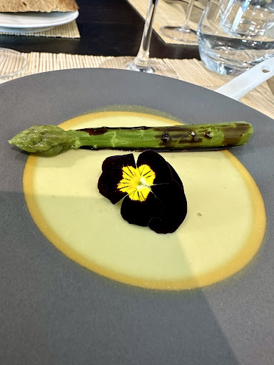 Elle a demandé si nous étions allergiques aux fruits rouges pour le dessert, mais aucune question similaire n’a été posée pour les plats précédents. Une carafe d’eau a été posée sans qu’on nous propose de bouteille d’eau. L’ambiance du restaurant pâtit également d’un décalage notable. La décoration est peu cohérente avec les prix et l’attitude affichée : des sets de table en paille tressée remplacent les nappes, et des napperons en papier sous certains plats donnent une impression de bricolage. Ces choix ne correspondent pas aux attentes qu’on pourrait avoir pour des menus allant jusqu’à 53 €.