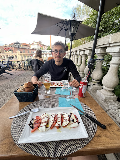 J’ai longuement hésité avant de faire ce commentaire car je n’aime pas mettre un avis négatif… Mais je me dis que si nous avions su, cela nous aurez évité de venir dans ce restaurant, et j’espère que cela donnera aussi une occasion d’amélioration 🫣 Déjà, contexte particulier car nous y sommes allé un dimanche après la fermeture de la piscine de Luneville donc 13h20 environ. Ambiance sympa pour un resto en famille avec la rivière à côté + divers choses à disposition qui permettent de faire patienter les enfants (ballons, petits vélos), en gros c’est comme si on allait manger chez les grands parents. Nous avons commandé des boissons en apéro, 2 verres sur 4 n’étaient pas très propres 😞. Les apéros ont été servis avec du pain. (?!) Nous avons ensuite attendu très très longtemps les plats : 2 assiettes de salade chèvre chaud (sans lardon car nous ne mangeons pas de viande) et une assiette de tagliatelles aux gambas pour les enfants. Pendant au moins 1 heure d’attente l’avantage comme je l’ai dit plus haut, est que nous avons pu occuper les enfants. Notre petit de 1 an et demi a vu un bol avec un fond de chips qu’il a voulu prendre sur une table (sûrement débarrassé là car une table n’avait pas fini ses chips), le gérant qui passait par là le lui a donné en vidant la fin d’un autre paquet de chips par dessus (donc les miettes), je sais qu’il n’y a plus trop de Covid et que ça partait d’une bonne intention mais quand même, quand on mange des chips on se lèche les doigts et on touchent les autres chips du bol ! Je n’ai pas trouvé ça très propre… 😳 Lorsque les plats sont arrivés nous n’avons pas compris pourquoi autant d’attente (il n’y avait pas énormément de monde… peut-être que la personne en cuisine a fait sa pause pour manger ?!), nous avons eu une salade avec 4 croûtons plutôt épais de pain ayant chacun une petite tranche de chèvre (clairement pas une buche de chèvre du bon fromager de Luneville…), 2 œufs durs coupés en 4 et même pas de sauce ou à peine ! Pour la maudite somme de 14€ 😱. Je pense que 7€ pour une assiette comme celle ci aurait été le bon pris dans un bon restaurant… Encore pire pour l’assiette des petits… 1 assiette de tagliatelles, donc des pâtes, sans RIEN dedans ! Pas même du beurre ! Aucune sauce ! Et sur une autre assiette une brochette de gambas grillées. Ça c’était à 20€ ! Encore une fois, divisé par deux ça aurait été déjà cher payé… Nous n’avons bien sûr pas pris de dessert car c’était encore très cher et nous n’avions plus envie d’attendre… 😓 Après, ce n’est que notre expérience… L’ambiance était sympa, très familiale mais niveau prix/service je trouve qu’il y a un trop...