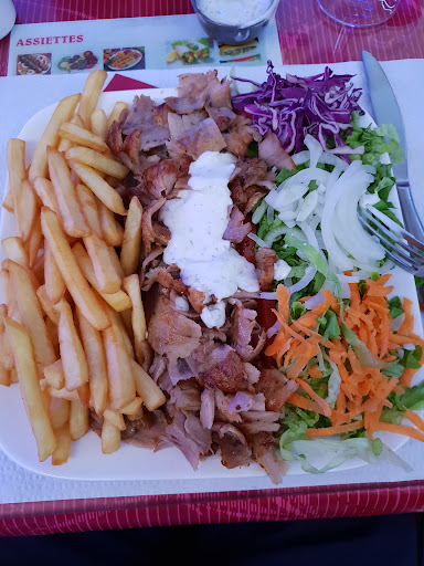 Nous nous sommes arrêter dans ce Kebab, un dimanche soir, à 19h30, le resto était vide, je vous déconseille vivement d'y aller , Patron qui mets presque 1 heure a préparer 4 assiettes , pour de la viande décongelée, et pour au final être servi froides!!!! Viandes pas bonnes du tout, frites archi sèches, 65€ pour 4 pour nous dire a la fin que le TPE est en panne et qu'il ne prend que la monnaie.... Et pour un patron de Bar restaurant, boire devant les clients n'est pas très adéquat...