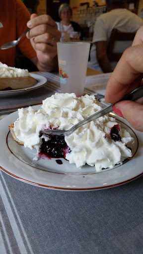 Na žalost, ovde nedostaje dobra organizacija. Mesto je godinama, vikendom veoma posećeno i zaista je gužva i to je razlog više da se nešto promeni. Pita sa borovnicama je dobra,medjutim ne dovoljno da opravda 40 minuta čekanja samo da bismo naručili( niko nam nije prišao ni da nas posluži pićem!) , 1h i 20minuta čekanja da je donesu, pa još 10 minuta stajanja ispred šaltera da bismo platili račun a pojeli smo za manje od 10minuta. Sok nam nisu naplatili. Ne znamo da li je greška ili znak izvinjenja. Možda bi jedno od rešenja bilo da pridju gostima čim ovi sednu, posluže piće i odmah okvirno kažu koliko je potrebno da se pripremi svež kolač .Možda bi mogli da ponude i unapred pečen i vruć. Ima nas kojima ne smeta hladna pita .Personal je ljubazan i vidno neorganizovan(na stolovima stoje prazni tanjiri a konobar prolazi pored njih u kuhinju, praznih ruku).Džemovi koje je ovde moguće kupiti, su odlični. Cene su malo veće, što je normalno jer nema...