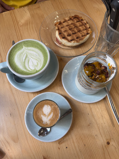 One of the cutest and calmest cafés in Lyon! First of all, the atmosphere is so calm and the baristas/servers - so chill; it was a super nice welcome. Second of all, the drinks were incredible! I loved the piccolo (with oat milk), having a firm and strong coffee taste. The matcha latte was also good; well made. Lastly, although there aren’t many options for breakfast/brunch, the things we got were quite tasty - the eggs & bacon bun and the yoghurt & granola. I particularly liked the latter - the yoghurt was so good, the granola tasted homemade (didn’t have much sugar), and it’s well enjoyed with the ‘coulis au choix’ - fruit puree, in my case with the tropical fruits mango and passion fruit. It’s also nice that they have discounts of certain things, once you purchase a savory dish. We had a wonderful experience and would definitely revisit if we come back to Lyon (also to try some of the...
