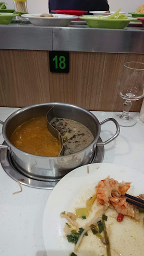 Read moreRestaurant fondue chinoise à volonté. On peut choisir jusqu'à 2 bouillons individuels parmi un choix de plusieurs bouillons (normal, épicé, Curry, miso, etc.). Ensuite, on choisit ses garnitures qui défilent sur des petites assiettes, comme au sushi bar. Le choix est TRÈS varié en viandes, légumes et nouilles mais aussi frais et surprenant (fleur de lotus, pak choï, boudin, tripes) : dépaysement garanti ! Il y a également un bar à sauces pour composer ses condiments sur-mesure, des plats chauds préparés (nouilles sautées, dimsun, nem), des desserts et des boissons en self-service et le tout est compris dans la formule à volonté. A notre arrivée et durant tout notre "voyage", les serveurs ont été très disponibles et ont su répondre à toutes nos questions avec chaleur et bienveillance. Je ne saurais donc que recommander ce restaurant, qui reste une très bonne...