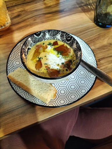 Mon plat Ă©tait un risotto avec une crĂšme de parmesan et de la mortadelle. Encore une fois, la mortadelle Ă©tait industrielle et le risotto n'Ă©tait pas assez cuit⊠DĂ©cidĂ©ment, la cuisson n'est pas le point fort de ce restaurant. Une nouvelle fois, j'ai signalĂ© le problĂšme Ă la serveuse, qui n'y a prĂȘtĂ© aucune attention, ne s'est pas excusĂ©e et a mĂȘme semblĂ© agacĂ©e, comme si nous la dĂ©rangions.