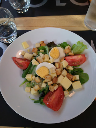 Je suis arrivé à 11h55 pour ne pas avoir tout de suite un restaurant plein de monde. Bonne idée à 12h15 il s'était bien rempli. Pris un menu du jour entrée petite salade sympa Plat pâtes avec pilons de poulet. Pâtes tièdes presque froides brute sorties de l'eau pas de sel ni de sauce. Pilon tiède ok. Le tout dans une petite assiette pas de légumes donc pas terrible si l'on prend que le plat du jour. Service réactif. Et très présent malgré le monde.. vite servi. J'ai manger en 30 min. Ambiance moderne.
