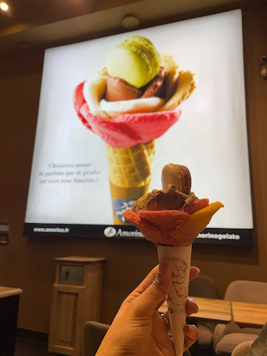 Read moreI had a fantastic experience at Amorino! I ordered their stunning rose-shaped ice cream with three delightful flavors: pistachio, mango, and chocolate. The pistachio was definitely my favorite—so creamy and rich in flavor! The mango offered a refreshing sweetness, while the chocolate was a perfect complement. To top it all off, I added a tiramisu macaron, which was the cherry on top of this amazing dessert! Overall, the ice cream was incredibly creamy and delicious. Plus, the staff were lovely and made the experience even better. I highly recommend Amorino for anyone looking to indulge in a unique and delicious ice...