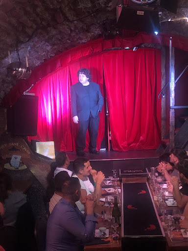 PrĂ©sente un soir avec un groupe de 14 personnes lors dâun sĂ©minaire dâentreprise. Salle pleine avec notamment des gens fĂȘtant leur anniversaire ou leur mariage. Salle close en sous sol (dans une cave voutĂ©e) avec impossibilitĂ© de sortir avant la fin du show câest Ă dire aux alentours de 23h/23h30.