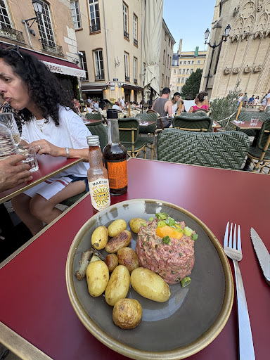 I had dinner at this restaurant last night and thoroughly enjoyed it… to be clear, it’s possibly one of the best dinners I have ever had. The ambiance was perfect. The restaurant is located in a very old building near the cathedral and they played romantic old French chansons, which perfectly fit the setting. The service was quick, attentive and friendly. The food was incredible. I had the onion soup as a starter, which was delicate and savory with a bit of natural sweetness from the onions. Then I had the quenelle… I had never had it before and didn’t know what to expect, but it was like tasting a little bit of heaven. It was quite light and tender, almost like a pudding, and together with the creamy sauce, it was savory with hints of sweetness from the shellfish cream sauce… 10 out of 10. For desert I had a raspberry sorbet with some kind of liquor. Initially I was a bit alarmed by the flavors. The sorbet was very tart (almost too tart), and the liquor was woody, pungent… almost too bitter. But as the sorbet melted a bit and the flavors really combined, I got it. I would almost say the desert was the highlight of the meal. It was challenging, unusual… but when properly mixed, it created a flavor that I can’t even describe. At the beginning of desert, I thought, “hmmm, I don’t think I’d order that again”….. but by the end of it, I was thinking, “maybe I should come back just for this desert.” All in all, I have nothing but praise for this restaurant and I would strongly recommend it to anyone...