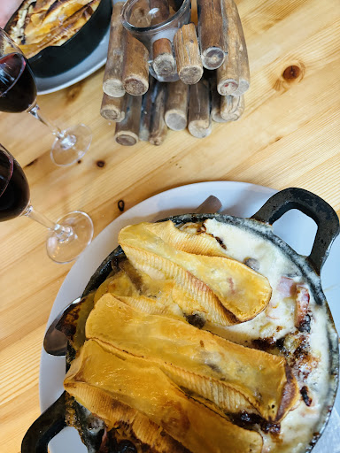 Réservation à 20h30, sortie à 23h30 soit 3h pour apéro, raclette, dessert, il ne faut pas être préssé. Raclette à 25 euros pour 5 bouts de fromages par personne, deux pommes de terres et une assiette de charcuterie à se partager en 5. Mais bon à la limite, ce n'est pas le plus important.
