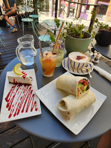 Les + du lieu : Les plats sont tous maisons et faits avec attention (et amour cela se sent :)) Les assiettes sont copieuses. J'avais deux gros Wraps pour le prix d'un. Un bon choix de sucré. Vous pouvez voir tous les entremets en vitrine. Les cafés et thés sont super bon. L'emplacement sur lyon qui est top. Les Attentions des propriétaires. Madame est au petit soin avec un grand sourir. Et monsieur accepte de s'adapter à mes goûts en ne faisant pas le plat sucré/salé pour moi. Un grand merci :) :) La super terrasse à l'ombre. Super sympa. Super Qualité/Prix