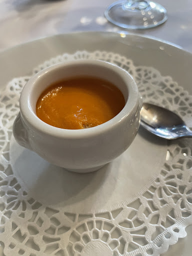 I want to rate higher but was a bit underwhelmed. Made a lunch reservation and the staff was very welcoming. The tomato amuse bouche was delicious. I started with the pate cake and was not quite what I expected. Good but not as expected (likely my interpretation as I thought it would be a cold dish). Ordered the chicken and it was drowning in cream sauce and the potatoes very soft. With all the cream I could have made them into mashed potatoes. So much beige. Another table had the chicken and theirs just had a little sauce. Would have been better. Wrapped up with cheese which was good. This restaurant had been so highly recommended that maybe I’m rating more harshly. I also have some seafood allergies so limited...