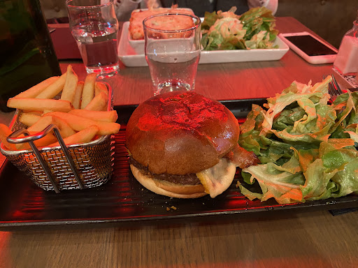 Qu'est-ce qui pêche ? La salle est certes spacieuse mais très bruyante (musique forte + voix des tables voisines qui portent beaucoup). L'éclairage de néon pour l'effet lounge rend la salle très sombre. Selon où vous êtes placés, vous sentirez l'odeur écoeurante et persistante des toilettes (la deuxième partie de la salle, vous ne pouvez pas manquer l'odeur et vous remarquerez qu'il n'y a quasiment personne) Nous avons pris une planche mais les portions étaient riquiquis pour une taille M et le pain était dur (nous étions dimanche, peut-être était-ce le pain de la veille?)