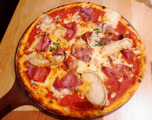 Bonjour, je travaille pour une plateforme de livraison de repas en ligne, il m'arrivait régulièrement de venir récupérer des commandes et de livrer vos pizzas à mes clients. Je ne connaissais pas l'enseigne et votre concept. Un samedi soir, à la fin d'une tournée de livraisons, j'étais affamé et me suis laissé tenté. Etant une tortue ninja amateur de pizzas, j'en avais assez de les livrer sans pouvoir les déguster! C'en était trop!Je me pris une 4 fromages à emporter et je filais chez moi. Il faut dire que j'ai été agréablement surpris et je me suis régalé. La pâte fine était délicieuse, les fromages étaient goûteux, un délice. Seul hic, étant un gros gourmand, j'aurais du en prendre deux...