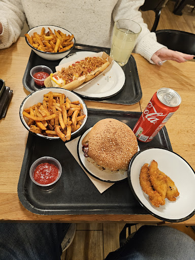 Read moreTrès bonne découverte d'un fast food haut de gamme français. Les produits sont tous frais et fait maison (frites, viande, fromage, pain, sauces...), et ça se sent ! La viande est extrêmement tendre et fond dans la bouche ! Le pain est bien frais, la sauce très onctueuse et accompagne parfaitement le burgé. Une recette spéciale lyonnaise est proposé et c'est gage de produits locaux et de qualité. Cependant le saucisson lyonnais n'apporte malheureusement pas grand chose à mon goût, si ce n'est une nouvelle texture comme du pepperoni. Les frites fraîches avec du paprika sont très bonnes et apportent récemment quelque chose. Ils ont aussi des boissons atypiques et certaines spécifiques à leur enseigne. Le mieux est très convivial et l'équipe du restaurant très à l'écoute et fort sympathique. Leur salle est assez cosy et souvent pleine, c'est pour ça qu'on va souvent devoir s'assoir à côté de gens que l'on ne connait pas ! La seule raison pour laquelle je ne mettrais pas les 5 étoiles est le prix qui est malgré tout un peu trop élevé puisque le burgé ne m'a pas tellement rassasié et était un peu petit , pour un prix de 15€ le menu "little formule" qui aurait été très largement justifie si le burgé avait...