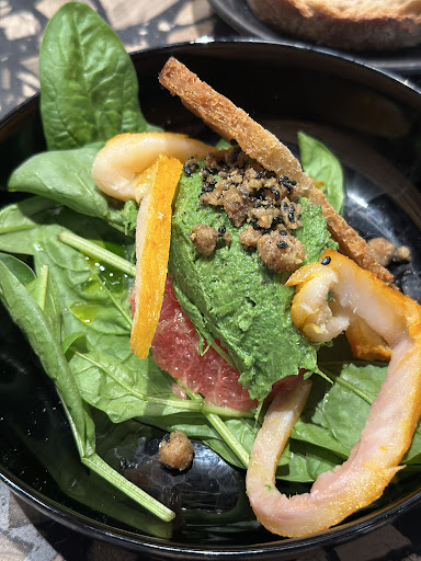 Read moreWe came to Lyon for the food. This place did not come anywhere near expectations. Drinks and service was great. None of the food impressed. We received a sample that was bland and needed salt. Our charcuterie board had good meats and bread, but that was it. No mustard, jelly, nuts or other garnishes to help it go down. My wife got a polenta dish. Just fried polenta, mushrooms and butter. Bland with no herbs or seasoning. I got something that said “chicken.” It was okay - edible. Processed mush wrapped in a flaky crust. Some good seasoning and fresh dill. But not really what I was hoping for. Some carrots. No green vegetables...