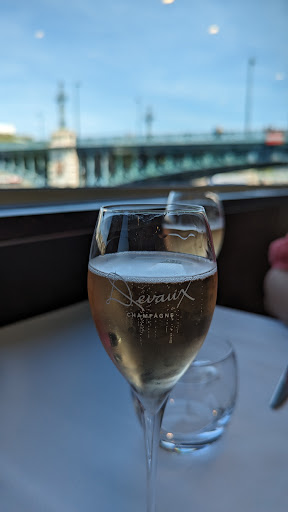 Read moreLieu agréable ,table cosy. J'ai pu effectuer sur ce bateau une balade de plus de 5h avec repas inclus. Départ sur le Rhône ensuite par la Saône, avec un aller et retour, voici la chose principale à retenir...(ce qui es déjà pas mal) Repas à 15 personnes: on nous a demandé de choisir 1 entrée, 1 plat, 1 dessert lors de la réservation. Nous avons pu après de longues négociations, avoir la possibilité de choisir : 1 entrée ,2 plats différents et 2 desserts différents. On a même du venir avec des gommettes de couleurs en fonction de nos choix pour pouvoir signaler ce qu'on avait choisi, le personnel sur place n'était même pas au courant...Cette règle s'appliquait parce qu'on était un groupe de plus de 10 personnes(OK) . Quand nous sommes arrivés nous étions sur des tables séparées. Les tables étaient de chaque côté du passage et ne permettait pas d'échanger aussi facilement que si nous avions été du même côté. Grosse déception, c'est pas clairement pas l'idéal quand on veut partager un moment en famille surtout pour des anniversaires... Point supplémentaire à savoir : nous n'avons eu aucun prix, ni aucun geste commercial lié au fait que nous étions un gros groupe. Clairement nous avons eu tous les inconvénients (pas de choix libre des plats, tables séparées, pas de prix). Honnêtement on aurait mieux fait de faire deux réservations différentes, au moins on aurait pu choisir ce qu'on voulait Concernant le repas, il était plus que simple et surtout il avait très peu de goût. Entrée : asperges ratées. Elles étaient coupées en deux avec une brunoise et une émulsion sans gout merci mais non merci . Plat : J'ai pris la dorade. Sur ce point rien à dire, cuisson parfaite ! Avec 2 haricots plats ,un oignon grié et une rondelle de pomme de terre . Et une raviole de champignons, bonne mais dont la pâte était bien trop épaisse. J'ai pu gouter le veau braisé façon parmentier et il est était fort bon. Dessert: Nougat glacé bon, mais rien de particulier. Le service a été efficace mais peut être trop (on nous a demandé qui voulait des boissons chaudes au moment où l'on mangeait encore le plat...). Cela s'explique par le fait qu'il y a une balade de 45min mais bon ce n'était pas très agréable. Que dire ... Décevant surtout pour le prix .. Il est plus intéressant d'aller dans n'importe quel restaurant ... (pas de fast food) Au plaisir de ne plus revenir...