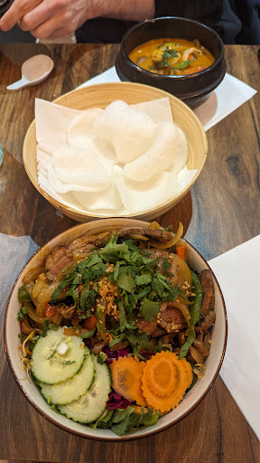 Très bon restaurant asiatique. Les apéritifs frits sont très bons. Mon ami et moi avons pris des salades asiatiques en entrée très bonnes mais seul bémol. Sur la carte pour ces 2 entrées rien n'indiquait que C'était des plats pimentés !! Et vraiment très pimenté 🥵🥵🥵 et pourtant j'aime bien le piment mais là c'était trop pour mon palais 😅 (Il y a des symboles pour indiquer le piquant des plats mais pas pour ceux qu'on avait commandé)