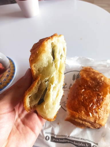Les pains au chocolat sont gros, MAIS comme vous pourrez le voir, il n'y a qu'une seule barre de chocolat, de taille relativement classique, ce qui fait que la grosse partie de la viennoiseries n'a pas de chocolat.