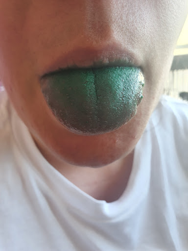 En parlant de ce dernier que j'ai généreusement offert à ma douce, lors de la dégustation, celle ci a commencé à grogner et à avoir la langue verte ! ( voir photo )