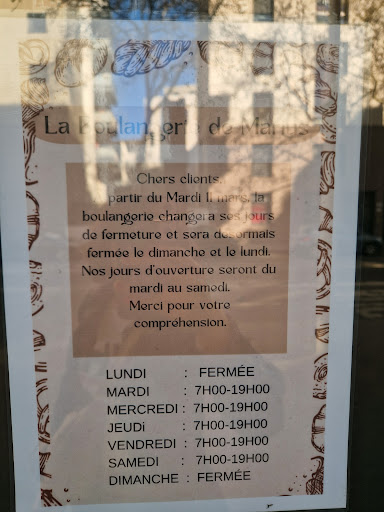 Read moreNous avons vu cette boulangerie ouvrir, et avons toujours Ă©tĂ© de fidĂšles clients depuis. Malheureusement nous dĂ©cidons aujourdâhui de changer de commerce, celui-ci vivant dĂ©sormais de plus en plus sur ses acquis : baisse de la qualitĂ© des produits : pain et viennoiseries (nous avons mĂȘme eu des baguettes dĂ©congelĂ©es !) en particulier augmentation des prix rĂ©guliĂšre arrĂȘt progressif des promotions (4e baguette offerte 2 jours/semaine au dĂ©but, puis 1fois, puis plus rien depuis quelques temps) sans prĂ©venir Ă lâavance jamais un seul geste commercial pour le clients fidĂšles fermeture le dimanche, et dĂ©sormais les jours fĂ©riĂ©s et tous les ponts : trĂšs rĂ©cemment du dimanche 31/10 au mardi 01/11 inclus, et du vendredi 11 au dimanche 13/11 inclus, alors quâil y a de rĂ©els besoins et de la demande ! Il est loin le temps de lâouverture oĂč la boulangerie proposait une visite de lâatelier, des animations dĂ©gustations, des jeux pour les enfants, ⊠Nous sommes extrĂȘmement déçus de lâĂ©volution de cette enseigne, et attendons avec impatience la concurrence, il y a...
