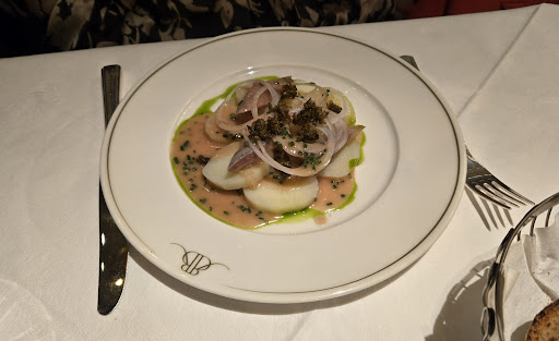 Read moreThe restaurant is beautifully designed, with indoor and outdoor seating (in season). We ate in the dining room. The service was impeccable and also warm and friendly. The menu has a variety of good choices, either in menu or a la carte forms. The food itself was excellent, from the amuse bouche through dessert. I had a raw oyster appetizer followed by a fish dish and both were great - the oysters at a perfect temperature and the fish (turbot) perfectly cooked in an amazign sauce. My wife has allergies, that these were accomodated at every step during the evening. The wine list is well-selected and offers excellent values. We will...