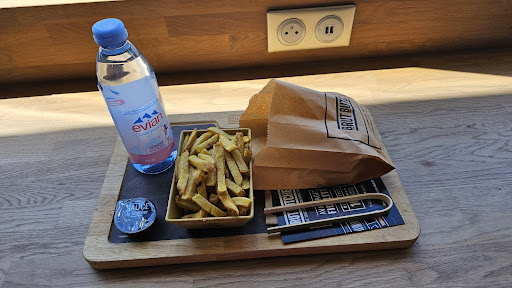 Nous étions beaucoup dans l’attente de manger à Brut Butcher n’en ayant pas dans votre région. Viande et frites toujours hyper bonnes mais vraiment trop salé… c’est surprenant vu qu’on peut en effet rajouter du sel soi-même, il vaudrait mieux que ça ne le soit pas assez. J’ai testé les diots ça aurait pu être pas mal mais trop salé aussi. Je commande une salade, elle est petite et il n’y a pas la sauce à l’huile d’olive super appétissante comme sur la photo ( à la place un genre de mayo moutarde trop salée aussi on s’en sort pas 😅) À noter que nous ne voulions pas de boisson, on s’est dit qu’on boirait de l’eau à la fin ayant deux gourdes dans la voiture mais on a regretté.