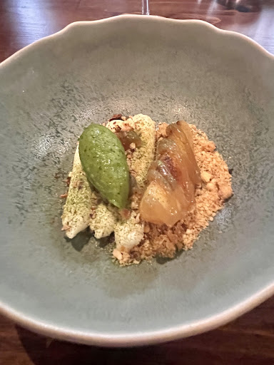 Read moreAll I can say is wow! Came here for lunch after finding it in the Michelin guide, not yet rated but the write up seemed perfect for us. Firstly the service was 10/10 from both the wait staff. Baptiste (I hope that's how his name is spelt) even went out of his way to suggest some sights and restaurants in his home town were were planning on visiting the following week. Great drink recommendations too. The food was exceptional. 11/10. We had the 5 course lunch, which was extremely good value for what we got. The dishes were very creative, beautiful and most importantly very delicious. Perfectly balanced flavours and textures, ticking every box imaginable, so well done to the talented kitchen and head chef. We also enjoyed the music in the background...cool tunes, perfect volume. Really nice venue to spend a couple hours. It's only a matter of time before this place has some Michelin stars against its...