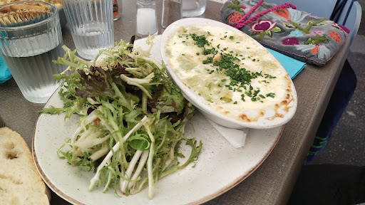 Une portion MINI au prix de 15,50 EUR !!! a été servie presque froide. Après ma demande de remettre le gratin au four, on m'a servi un bol de graisse bouillonnante environ 20 minutes plus tard, car la graisse s'était séparée du fromage et de la crème.