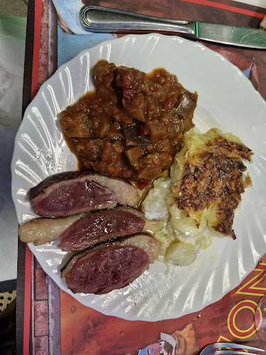 On ne prends pas d’apéritif et on demande une carafe d'eau et sommes accueilli par un "Pour le prix que vous payez, la moindre des choses serait de prendre quelques chose" On a guère apprécié. D'ailleurs le vin n'est autre qu'un cubi de marque U posé sur le comptoir ... Pas vraiment pro ! Un autre couple venu par Groupon (comme les 4 tables ce jour la) a eu droit a un "Ah bah merci ça fait plaisir" a la commande de leur carafe. Mon verre était dégueulasse et le reste du resto franchement pas propre. Que deux plats au choix, dont une qu'on n'aimait pas, donc choix plutôt limité ! Inutile de préciser que la gérante (unique personnel) ne nous a pas accordé la parole la moindre fois. Le dessert quant a lui, pas le choix non plus, on nous a servi une petite part de tarte aux pommes industrielle. Tarte de diamètre 20 ou 25cm grand max, de chez U certainement.