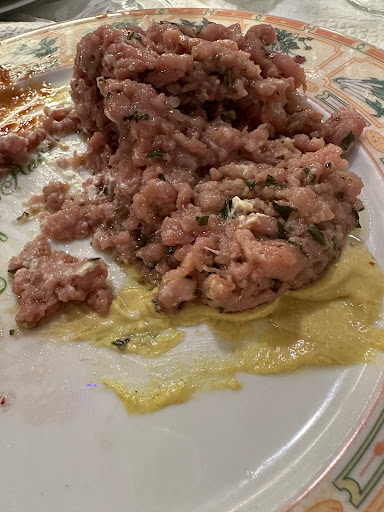 Niveau cuisine : Bonne viande, mais encore une fois service désastreux, tartare servi comme de la pâté pour chien, bavette d’aloyau et gratin dauphinois noyés dans sa sauce… Sauces accompagnantes à payer en supplément ainsi que l’accompagnent gratin dauphinois ou frites (où, au final, ce n’est même pas vous qui choisissez ce que vous voulez manger). Une salade inondée de sauce, présentée avec une tomate cerise et deux pauvres tartines de chèvres chaud (agrémenté de confetti). On mange clairement de la bonne viande ailleurs à Lyon.