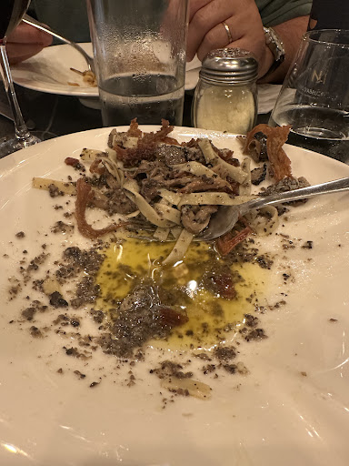 Mains arrived. I didn’t go for pizza, and I wish I had. The truffle pasta was a disaster: overcooked, swimming in truffle oil, topped with a heap of shaved truffle. Heavy, greasy, and frankly disgusting. When they cleared the plate and asked how it was, I suggested they might want to strain the oil off for tomorrow’s service. That earned no apology, no goodwill, nothing.