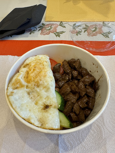 La carte propose une variété de plats savoureux, tous préparés avec des ingrédients frais et de qualité, et je suis ravie de souligner que tout est halal. J'ai particulièrement apprécié le bœuf loc lac, qui était tout simplement délicieux. Les portions étaient généreuses et le service était impeccable, avec un personnel attentif et sympathique.