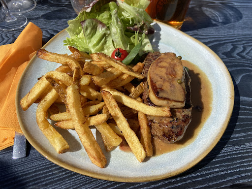 Read moreBon accueil. Réservation pour 10 faite 3 semaines en amont et sur place, mais non prise en compte pour le jour J.. Heureusement il y avait de la place en terrasse. Serveuse à la limite du désagréable. Ne connaît pas la dispo des plats, nous dit qu’il n’y a plus de burger alors qu’on en a vu sortir de cuisine 1h après notre commande. Service archi long (près de 2h30 pour apéro-plat-dessert) et attente en plein soleil, ils n’ont pas voulu déployer les parasols à cause du vent que je qualifierais de « modéré » (on a pris des coups de soleil). Côté cuisine, le niveau est bien au dessus. Les plats étaient appétissant et savoureux (pavé bœuf rossini), pourraient être un peu plus copieux notamment au niveau des frites maisons qui sont parfaites ! Le gratin dauphinois en accompagnement est parfait aussi. La très bonne tarte aux pralines m’a plus conquis que la tarte citron. Le rapport qualité prix est correct, dommage pour la médiocre...