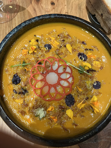We ordered the set menu but received soups for our main dishes. The server did not bother to even offer recommendations or tell us these were soups. It did not say so on the menu. We asked her if we can order something else and she refused! What kind of service is this? The food we received was not good, lacking flavor although the presentation looked nice. For the amount of money we spent here what we received was not worth it. We had really been looking forward to try this place and sadly it was a disappointment on our last day in Lyon.