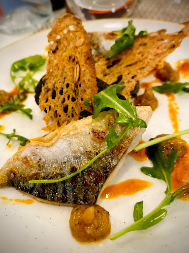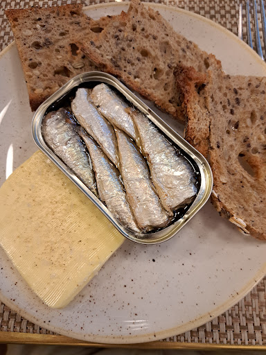 Read moreFirst, this is a nice restaurant with generally good food, well presented. One of our starters and both our mains were excellent. They also have an extensive list of wines by the glass. The four stars for food are because I ordered sardines, expecting fresh sardines. What I got were sardines presented in a tin. Quality of these was good but nevertheless I don't expect to go to a nice restaurant and be served tinned sardines. Service was good but one young waitress was going her best to serve 34 seats, mostly full, by herself. A second waiter would be a good idea. Atmosphere scores low due to two factors. First, the lighting levels are really too high. Lowering the level would immediately increase the ambiance. Second, the area in which we were seated was very 'tight', with 6 tables were 5 would have been much more comfortable for patrons and wait staff. Overall, not a bad experience but not a great one either. Apart from the sardines, the food...