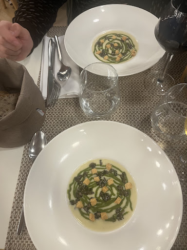 Read moreVraiment trĂšs déçu de notre repas. Nous avons voulu nous faire plaisir en prenant leur menu le plus cher (51âŹ) pour un repas en 4 services annoncĂ© comme entrĂ©e poisson viande dessert. Au final nous avons eu 4 plats redondant (soupe puis deux veloutĂ©s puis pana cota ) Nous sommes déçu par le plat de viande qui sâest avĂ©rĂ© ĂȘtre une mousseline de volaille sans intĂ©rĂȘt (la serveuse nous a mĂȘme dit suite Ă notre remarque quâelle se demandait justement Ă qui ils refilaient cette mousseline) Les plats sur la carte Ă©taient allĂ©chant mais en prenant ce menu concoctĂ© par le chef ce fut une grande dĂ©ception. Le chef nâa mĂȘme pas daignĂ© venir Ă©changer avec nous suite Ă la demande et a prĂ©fĂ©rĂ© rester Ă sa plonge⊠ils ont perdu des clients et devant ce genre de comportement je ne peux que vous dĂ©conseiller de prendre ce menu chez eux !!!