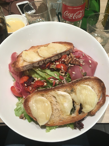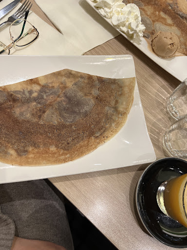 Pour une première fois, étant un pressé, jai choisi une crêpe jambon avec œuf. Certes, elle était accompagnée d'une salade mais celle-ci directement sortie d'un sachet sous vide portait les traces d'une sauce préfabriquée de type Lesieur, même chez-moi, je ne me serais pas permis. Quand à la crêpe, je me demande si elle était faite sur place, et concernant son œuf, il était posé négligemment dessus alors que comptais bien le trouver dedans. Ils font aussi des plats du jour, j'aurais dû le prendre, peut-être aurais-je...