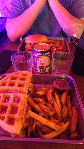 Read moreL'accueil a été très chaleureux et le service particulièrement rapide. Malheureusement, les plats n'étaient pas à la hauteur de ces points positifs. J'ai commandé, en supplément de mon menu, trois tenders pour 5,95 €, qui se sont révélés très petits, contrairement à l'image d'énormes tenders que l'on voit sur les réseaux sociaux. De plus, la viande était caoutchouteuse et sans saveur. Pour le Waffles Burger, la texture de la viande était similaire à celle des tenders : pas satisfaisante. Le guacamole manquait de saveur et la sauce curry mango n'était pas une bonne association avec le concept du burger, ce qui rendait l'ensemble écœurant. Côté positif, les frites, faites maison, étaient très bonnes au départ. Cependant, en fin de portion il ne restait qu'une trentaine de petits morceaux qui avaient surtout un goût d'huile. Au total l'addition s'est élevée à 24,30 €, ce qui à mon sens, ne les valait pas étant donné le manque de qualité et de saveur des plats. Je ne reviendrai pas, mais j'espère sincèrement qu'une amélioration sera apportée à ces points négatifs, car le concept est vraiment original ! Ps : Mon plat est celui en arrière plan, le premier et celui de mon amis qui partage...