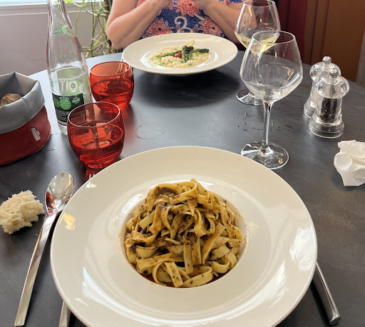 Une idée une, suggestion, une recommandation pour satisfaire amplement les papilles et partager ce qui ici peut réjouir avec raison , " Les Tagliatelles " fraîches, maison sorties du piano de "Franck Nermont, Maître Restaurateur" en ces lieux ( truffes, olives noires, champignons des près mixés ) qui seront subliment accompagnées par le divin "PIC- SAINT-LOUP" AOP, millésime 2019, Les Nobles Pierres, Château de Lascaux, un Grenache, Syrah au travers duquel le Languedoc-Roussillon est dignement bien affirmé ...