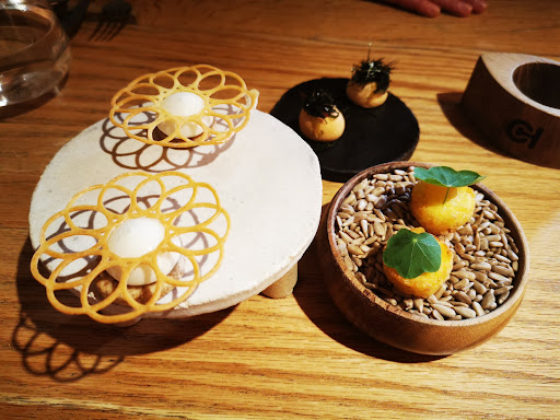 Read moreI'm not sure we're to start, but it is definitely a recommended place to discover if you like vegetarian food. First the place. Beautiful with great attention to detail with a lot of wood and natural materials, fitting it perfectly with the food . You are in a "earthy" place, ready to eat sophisticated dishes from nature earth. The concept is based on a series of dishes, 7 at lunchtime, and 10 at supper time that you discover along the way. Every dish comes with a precise explanation from the waiter, whichever goes into the concept or the type of flavours that the chef was looking for. Without going into everything dish, we tried explosive mushroom cream, jerusalem artichokes, panne smoke salted butter, and many more savours new to us. Somme are more exotic or tastier than others, but no lack of new experiences. Also very accomodating with food restritions as I asked not to have any wine in my dishes and they just find good alternative solutions It's definitely something to try, enjoy, or...