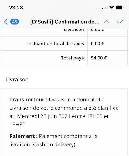 Read moreNous avons choisi diverses choses: sushi, sashimi, california, gyoza, brochettes de saumon, riz : tout est globalement bon. En revanche ils ont des délais de livraison inacceptable : 2h d'attente !!!! (Ils avaient prévu entre 45min et 1h) et le pire c'est le mensonge par téléphone quand au bout de 1h15 on ose demander pourquoi nous ne sommes pas livrés "la commande est partie, elle arrive" , imaginez votre pauvre livreur qui s'excuse en disant qu'il y avait du rush et qu'il sort du restaurant au plus vite pour nous livrer. Conclusion : ne respecte pas leur délais, horaires de livraison prévus et en plus mentent à leurs clients, tout...
