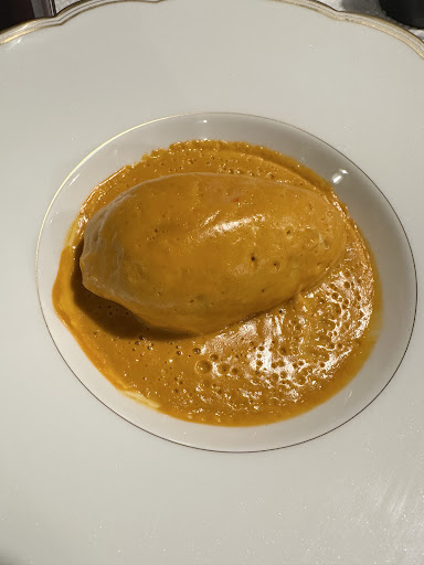 For the record, we chose L’Escalope de foie gras de canard chaude poêlée and Omelette du curé avec queues d’écrevisses for entrees, followed by La Volaille de Bresse and La Cervelle de veau. The brains were the weakest dish, but everything is relative, and the food sparkled. I must add that my dessert choice of Les Petits pots au chocolat et madeleines tièdes au miel was possibly the finest chocolate dessert I have ever had....I just didn't want it to end. And my partner's L’Île flottante aux pralines was pretty outstanding, too. Unfortunately, I forgot to note the wine we selected, but I know it was a white with sufficient body and fruit to handle the flavourful food we ate.