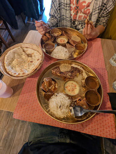 Read moreFirst time visiting this eatery and thoroughly enjoyed my experience. We ordered Veg and Non-Veg Thali with the Garlic Naan and Reblochon Naan which is the saturday brunch option. It gives you a variety of different flavours from Samosa Chaat, Butter Chicken, Dhal Makhani, Dosa + Bhaji + Chutney + Sambar, fluffly rice and Kheer. Everything was delicious. If you want a genuinely authentic experience of foods from the south India like Dosa + chutney + Sambar or north indian with naan + butter chicken + somasa chaats this is the place to visit. I was born in India but grew up in the UK, I moved to France a few months ago and missed the delicious home cooked meals by my parents. The owner is a lovely person who studied culinary, mentioned that he visits india regularly to get new recipe ideas to cook for his patrons. His light touch with chillies but wholesome complex flavour palette of spices makes each dish unique and a pleasure to eat. Most authentic experience of India...
