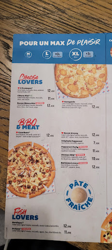 Cela fait maintenant 3 ans que je fréquente le domino de caluire, et je me rends systématiquement sur place (jamais de livraison). Et depuis 3 ans, bien qu ayant vu différentes équipes, j'ai toujours trouvé les équipes particulières accueillantes, qui reconnaissent leurs clients, ce qui est vraiment agréable. Les pizza sont correctes fidèles à domino. J ai encore des adresses à tester mais la qualité est honnete. En revanche à 16 euros la pizza les jours hors promo (large), je ne serai jamais client. Mettre le prix d un resto dans un fast food, non merci. Alors énorme big up aux equipes, parfois submergées mais toujours prévenante. La salle pas super top pour y manger, manque de savon souvent dans les toilettes, cest pas le kif.